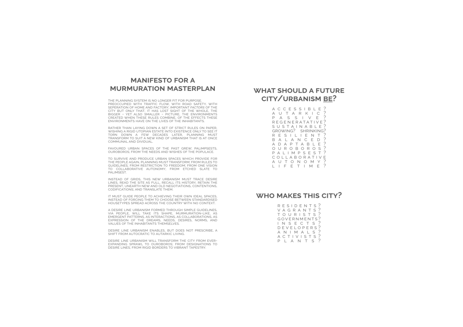 As such, I don't feel this project quite achieved what I wanted it to. A bought of illness during the second half of the project only compounded my problems as my time-consuming solution to my lack of hardware required time I did not have, and due to this there's a few things distinctly missing in the second presentation; my experiments with mixtures of the different densities of plot in grasshopper (it crashed a LOT even in 2D), the long process of tweaking I went through to reach decisions on Manston's guidelines, and the research into infrastructures, advocacy planning, rhythmanalysis, aural architecture, human traces and desire lines, debates around context, and other related topics could have made an appearance.